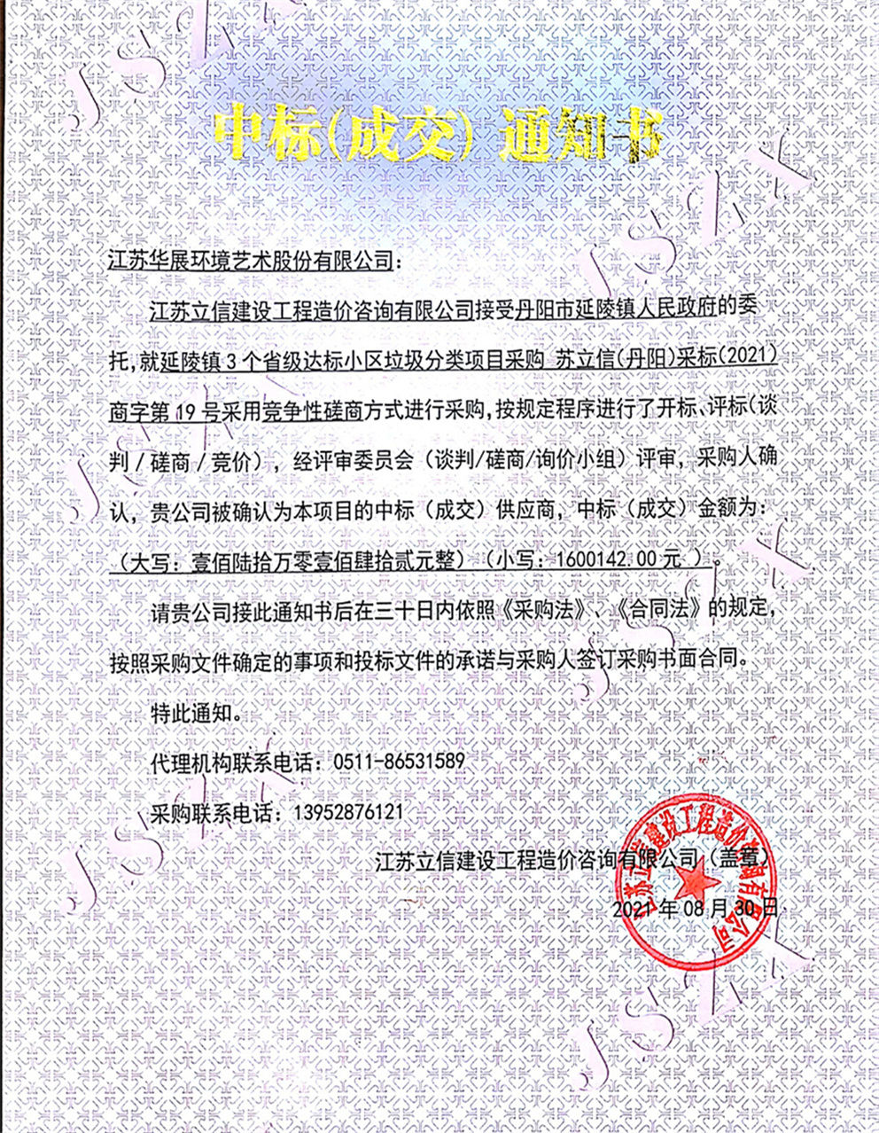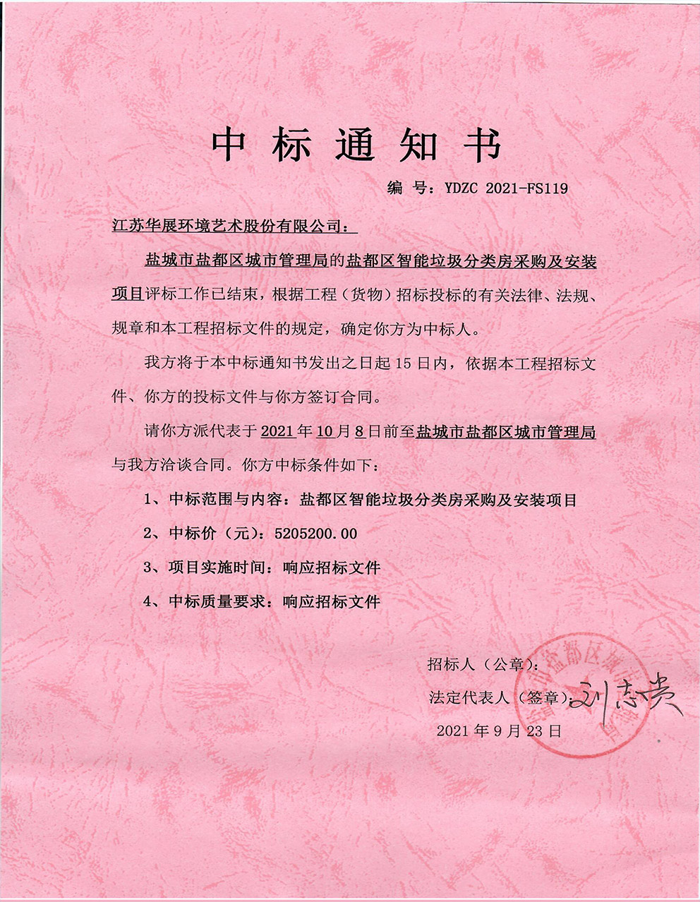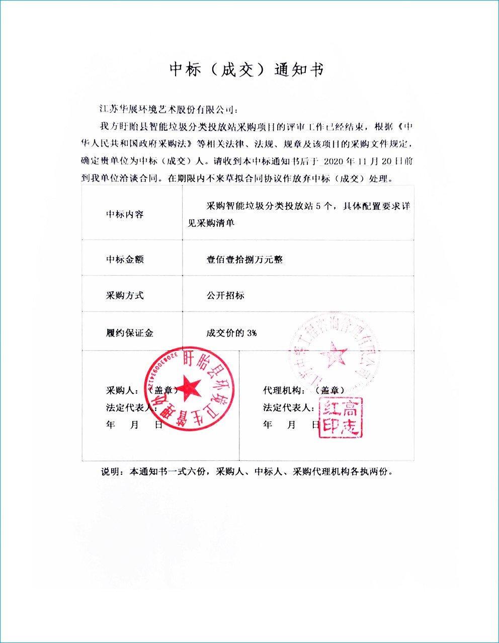 【中標(biāo)通知】江蘇省南京江北新區(qū)泰山街道小區(qū)生活垃圾分類收集點(diǎn)建設(shè)運(yùn)營(yíng)工程垃圾房、垃圾亭采購(gòu)及相關(guān)服務(wù)項(xiàng)目